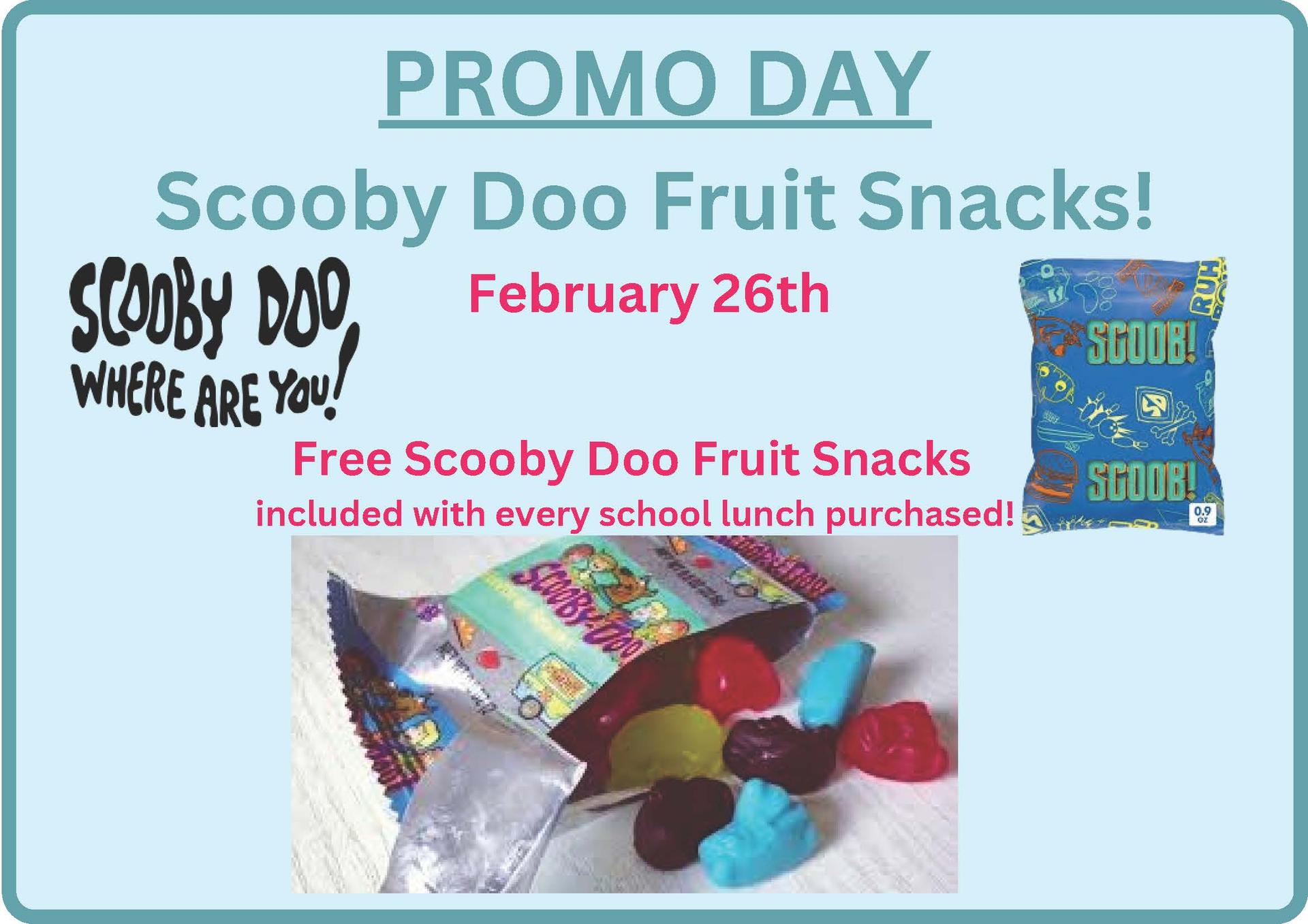 - 26 - Lunch PROMO DAY - Free Scooby Doo Fruit Snacks with every lunch purchase