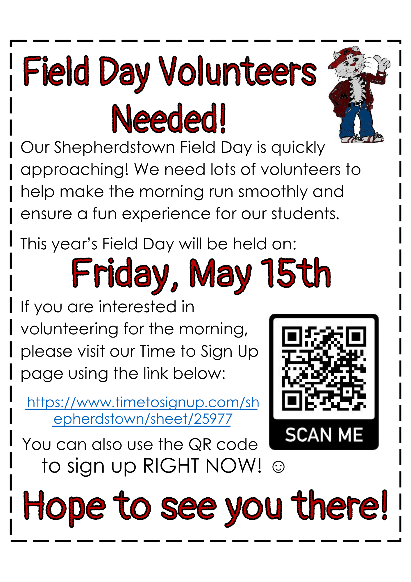 1. We will NOT be serving lunch on this day because we will use the entire gym and cafeteria for the event. Students must pack their lunch this day and will be eating in their classrooms. 2. We still need a few volunteers to act as "tour guides" for the days events. If willing to help, please email shepoffice@mbgsd.org. |